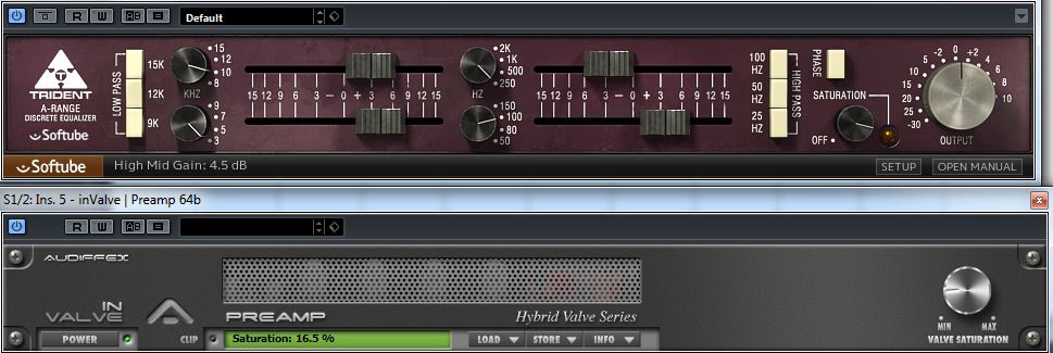Der exzellente Trident A Range Equalizer von Softube macht den Klang transparenter, offener, der inValve Preamp von Audified sorgt für den knackigen Attack der Bassdrum: