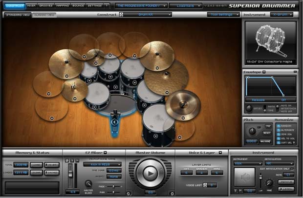 Die Drums stammen aus Toontracks Superior Drummer, Library „The Progressive Foundry“