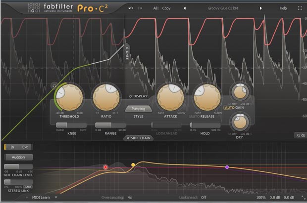 Es ist schade, dass es den RS124 nicht mehr gibt, aber andere virtuelle Kompressoren liefern heute einen ähnlichen Sound. Hier hören Sie den Fabfilter Pro C2 bei der Arbeit. Er soll die Drums ordentlich zum Pumpen bringen: