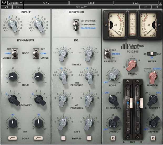 Der EMI TG12345 Channelstrip mit Kompressor, Limiter, EQ, Mittel/Seitensignalbearbeitung und einem höllischen Drive-Regler verfügt ebenfalls über eine deutliche Färbung und ist weit davon entfernt, seine digitale Herkunft aus Nullen und Einsen auch nur erahnen zu lassen.