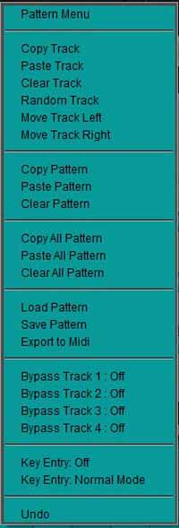 - Off = Offset, bezieht sich auf das Timing. Damit lassen sich die Schläge verschieben, um menschliche Ungenauigkeiten einzubauen bzw. am Groove zu basteln. Off erlaubt nur eine Verschiebung nach rechts, also eine Verzögerung. Drummer setzen aber auch schon einmal Schläge vor den Punkt, um den Beat anzutreiben. Das ist hiermit nicht möglich, auch nicht mit dem Trick, den Schlag eine Position weiter nach vorne zu verschieben und für Offset den Maximalwert einzustellen. Genauer gesagt: Bei Tempi unter etwa 180 BPM kommt der Hit dann immer noch zu früh. Ab 180 BPM reicht die Offset-Zeit. Es wäre schön, wenn der Hersteller hier noch nachbessern und eine Verschiebung nach links auf der Zeitachese realisieren könnte. Es gibt natürlich auch externe Lösungen. Zum einen erreicht man per Rechtsklick in den Sequencer dieses umfangreiche Menü: