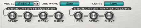 Die Regler zu Oszillator Frequency bestimmen den Klangablauf der Bassdrum und gehen weit über ein einfaches Tuning hinaus. Sie interagieren miteinander.