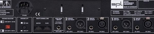 Die ausgeklügelte, halbautomatische „Progressive-Time-Control“ erlaubt jede Feinarbeit, die beim Mastering erforderlich ist. Eine Soft-Knee-Schaltung steht für sanftere Gangarten bereit, ein an der Frontseite schaltbarer Sidechain-Eingang erlaubt die Steuerung der Kompression durch externe Signale, beispielsweise um eine Fläche zu rhythmisieren, Bass und Bassdrum im Mix besser zu trennen oder den Gesang aus dem Hintergrund herauszuarbeiten.